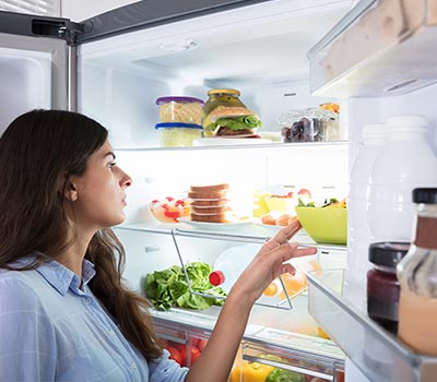 Start by unplugging that older extra refrigerator in the garage or basement. Older-model refrigerators cost you an average of $150 per year to run. Make sure your kitchen refrigerator is in a cool place, away from direct sunlight and heat-generating appliances that can make it work harder. Keep it no colder than about 35 to 38°F, with plenty of air circulation behind it. Don’t stand with the door open; grab what you need quickly and shut the door. Make sure the door seals fit tightly against the doorframe.